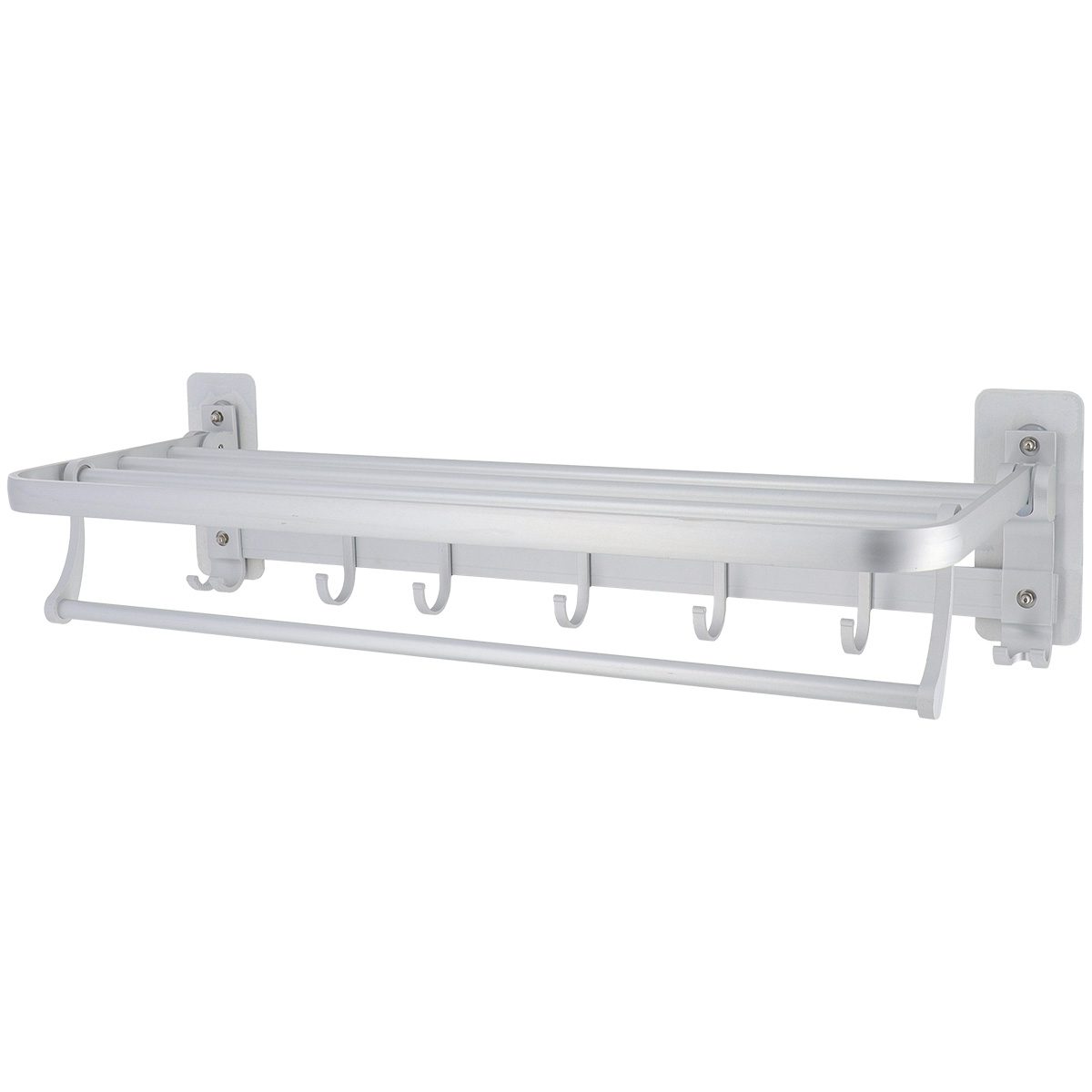 Porte-serviettes étagère aluminium rétractable TENDANCE – Patère murale pliable avec crochets